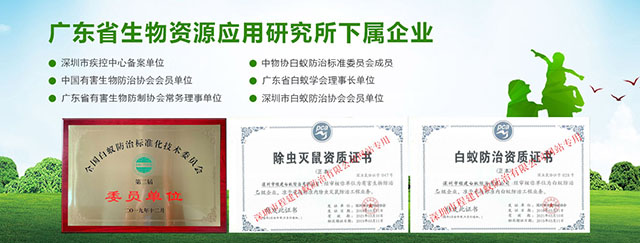 專注于徹底根治、防治結(jié)合,售后跟蹤服務,專業(yè)服務工程師有豐富實戰(zhàn)經(jīng)驗超過十年。持有專業(yè)資格證書認證:“有害生物防制服務機構(gòu)服務能力證書B級”、“白蟻防治服務機構(gòu)服務能力證書B級”所有員工持有“深圳市白蟻防治上崗證”和“深圳市除蟲滅鼠上崗證”,雙資格證上崗服務。榮獲過:“優(yōu)質(zhì)服務示范單位”、“白蟻防治服務信譽AAA級單位”、“深圳市白蟻防治先進單位”、“深圳市十大白蟻防治品牌”、“深圳市殺蟲公司”、“深圳市消殺公司”先進單位等榮譽。